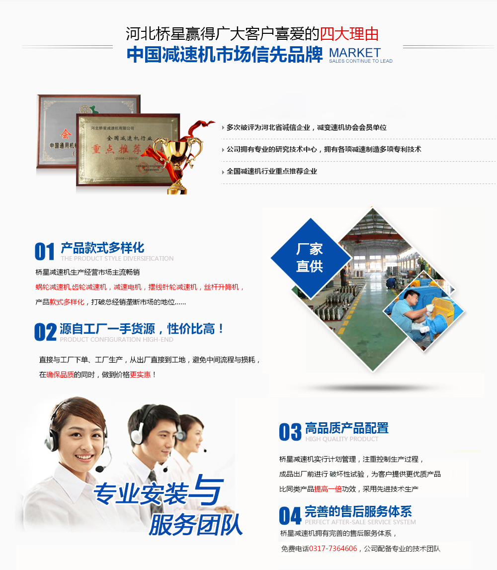 河北橋星減速機(jī)制造有限公司以雄厚的技術(shù)力量,大型先進(jìn)精良的生產(chǎn)加工設(shè)備,采用新工藝和檢測(cè)設(shè)備,成功開(kāi)發(fā)了蝸輪蝸桿減速機(jī)、蝸輪絲桿升降機(jī)、擺線(xiàn)針輪減速機(jī)、圓弧齒蝸輪、平面包絡(luò)、錐面包絡(luò)、圓柱齒輪、硬齒面、行星齒輪、R、S、K、F模塊化齒輪減速電機(jī)、諧波減速機(jī)等十大系列上萬(wàn)種規(guī)格的減速機(jī),廣泛應(yīng)用于冶金、礦山、鋼鐵、起重、船舶、水泥、化工,食品、制藥、造紙等機(jī)械工業(yè)各部分的減速裝置。 河北橋星減速機(jī)制造有限公司座落于地理位置優(yōu)越、交通便利、馳名中外的雜技之鄉(xiāng)-吳橋,公司有近20多年的生產(chǎn)歷史,減變速機(jī)協(xié)會(huì)會(huì)員單位,公司是集研發(fā)設(shè)計(jì)、生產(chǎn)制造和銷(xiāo)售各類(lèi)減速機(jī)的專(zhuān)業(yè)化公司。“冀橋星”牌產(chǎn)品已全面通過(guò)ISO9001國(guó)際質(zhì)量體系認(rèn)證,多次被評(píng)為河北省誠(chéng)信企業(yè)。 在企業(yè)的發(fā)展中,公司始終堅(jiān)持科技創(chuàng)新,誠(chéng)實(shí)守信,質(zhì)量為本的發(fā)展道路,不斷追求高科技含量,高附加值,高市場(chǎng)容量的品牌產(chǎn)品... [查看更多]