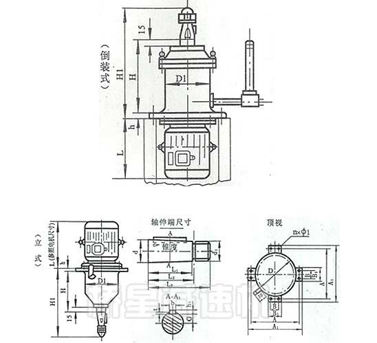 TDJ132、TDJ132A、TDJ160、TDJ160A、TDJ200、TDJ200A、TDJ225、型減速機(jī)結(jié)構(gòu)圖及配套電機(jī)功率與高度尺寸L