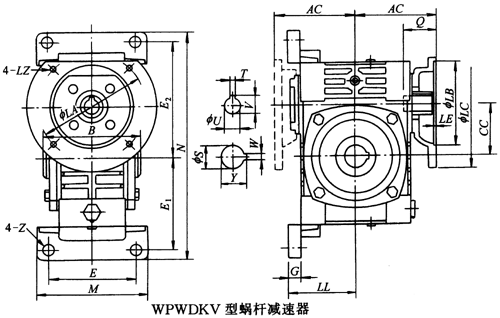 WPWDKV40、WPWDKV50、WPWDKV60、WPWDKV70、WPWDKV80、WPWDKV100、WPWDKV120、WPWDKV135、WPWDKV155、WPWDKV175、WPWDKV200、WPWDKV250、型蝸輪蝸桿減速器主要尺寸