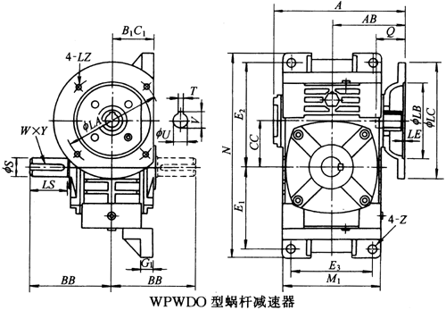WPWDKO40、WPWDKO50、WPWDKO60、WPWDKO70、WPWDKO80、WPWDKO100、WPWDKO120、WPWDKO135、WPWDKO155、WPWDKO175、WPWDKO200、WPWDKO250、型蝸輪蝸桿減速器主要尺寸