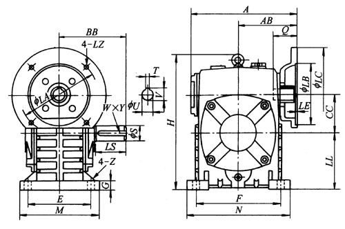 WPDS50、WPDS60、WPDS70、WPDS80、WPDS100、WPDS120、WPDS135、WPDS155、WPDS175、WPDS200、WPDS250、型WPDS型蝸輪蝸桿減速機的減速器主要尺寸