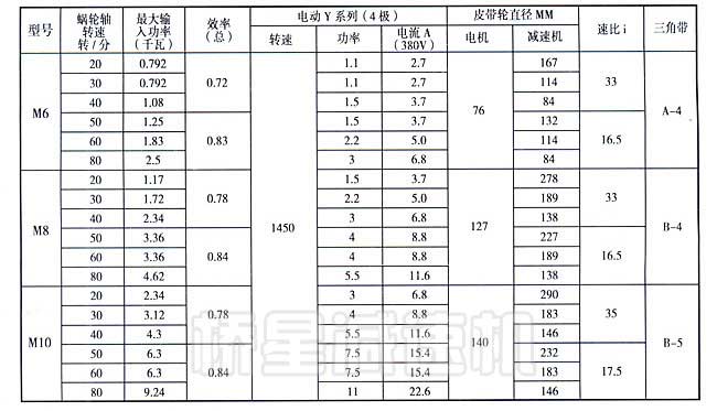 本系列減速機依據出軸轉速和最大輸出功率兩個因數來選用。選用時依據下表數據嚴格選擇。出軸轉速選用時不得超過80轉/分。